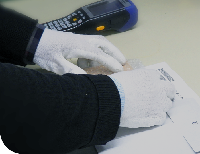 製造元で作られた商品はセンターへ納入され、メーカーからの納入指示に基づいて、検品作業を行います。